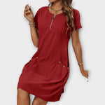 Mini Dress with Short Sleeves and Zip at the Neckline