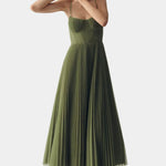 Showcase your elegance and femininity with this stunning green midi dress featuring delicate straps and a pleated skirt. The fitted corset at the top offers a perfect fit and style, while the movement of the skirt adds a sense of luxury to every appearance.