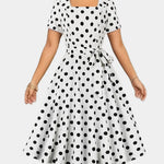 The white dress with black polka dots strikes the perfect balance between elegance and retro charm. Ideal for any time of the day, it offers comfort and a striking appearance.