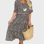 Showcase your summer style with this airy dress that combines natural tones with a subtle pattern. A piece that offers comfort and elegance with every step you take.